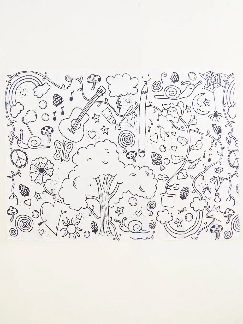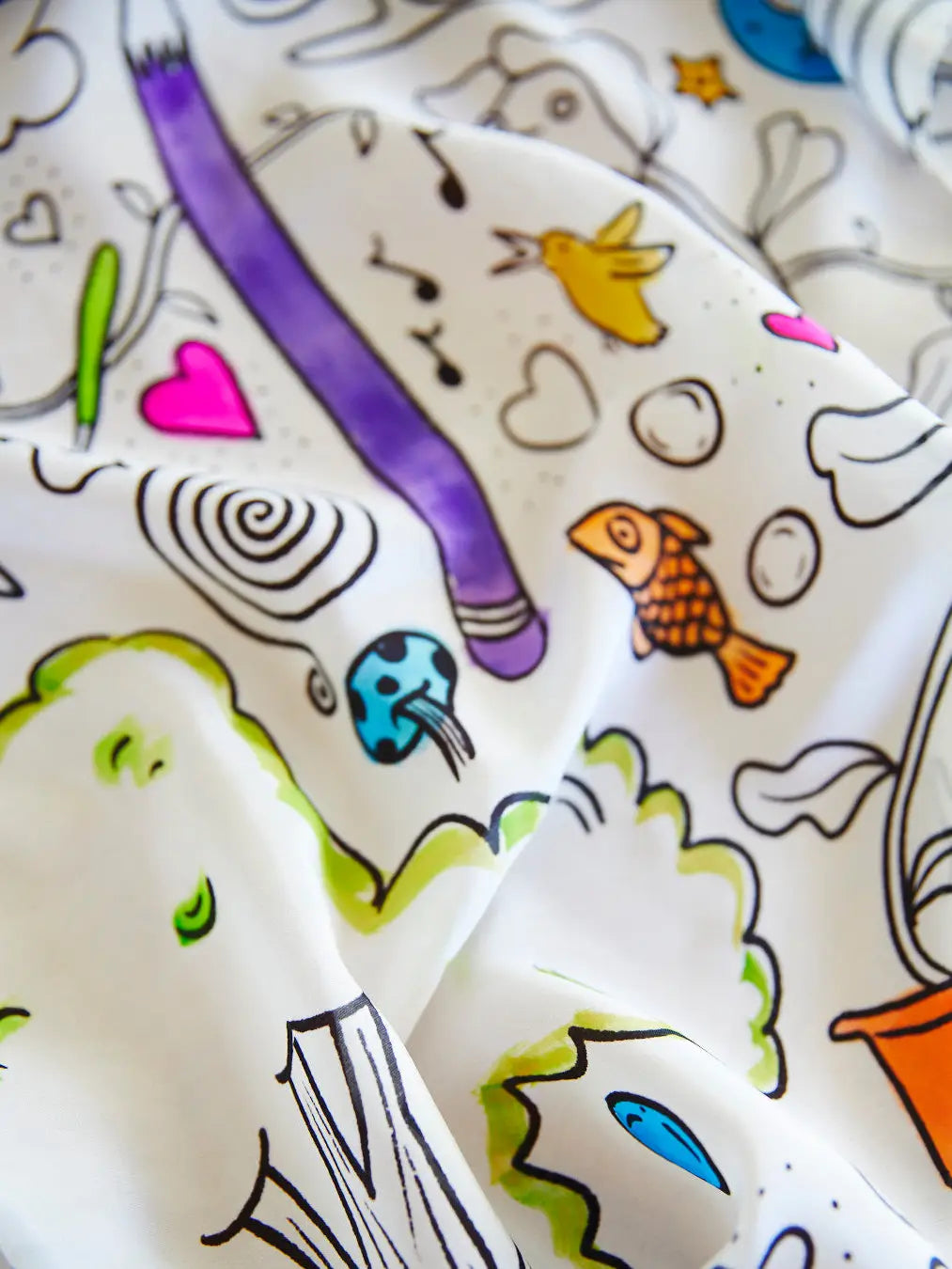 Seek & Find Playsilks are made in collaboration with different artists. The Coloring Seek & Find features artwork by Olivia de Recat. Find her at @drawingolive on Instagram.
